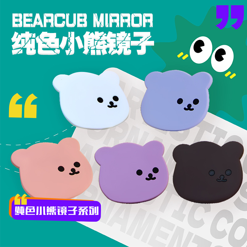 漫画の熊の小さい鏡のpvcの柔らかいゴムの化粧の鏡の手持ち式の鏡の携帯型のカバンのポケットは化粧の小さい鏡を直して卸売りします。