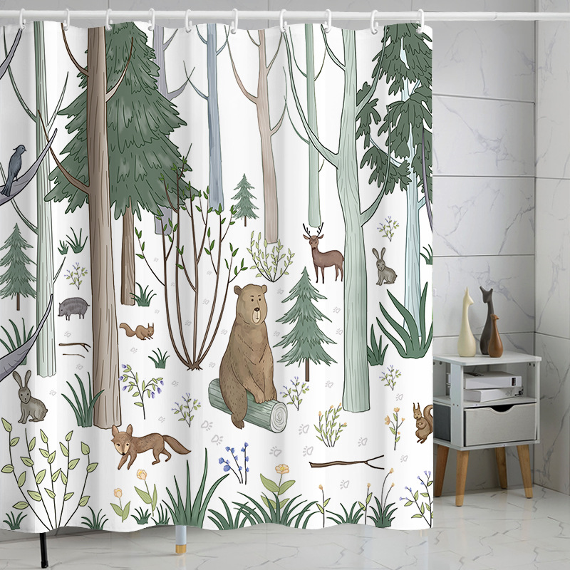 クロスボーダー 3D デジタル印刷山林ミストフォレスト動物防水シャワーカーテンポリエステル