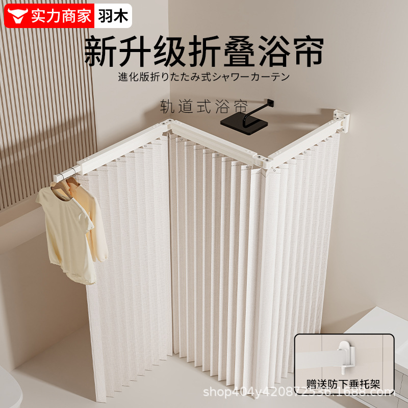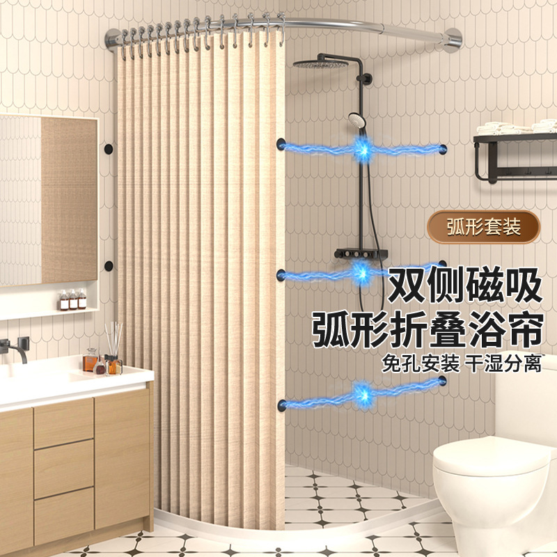 折り畳みシャワーカーテン磁気吸引セット穴なし浴室防水布トイレアーチ型シャワー乾湿分離遮断カーテン