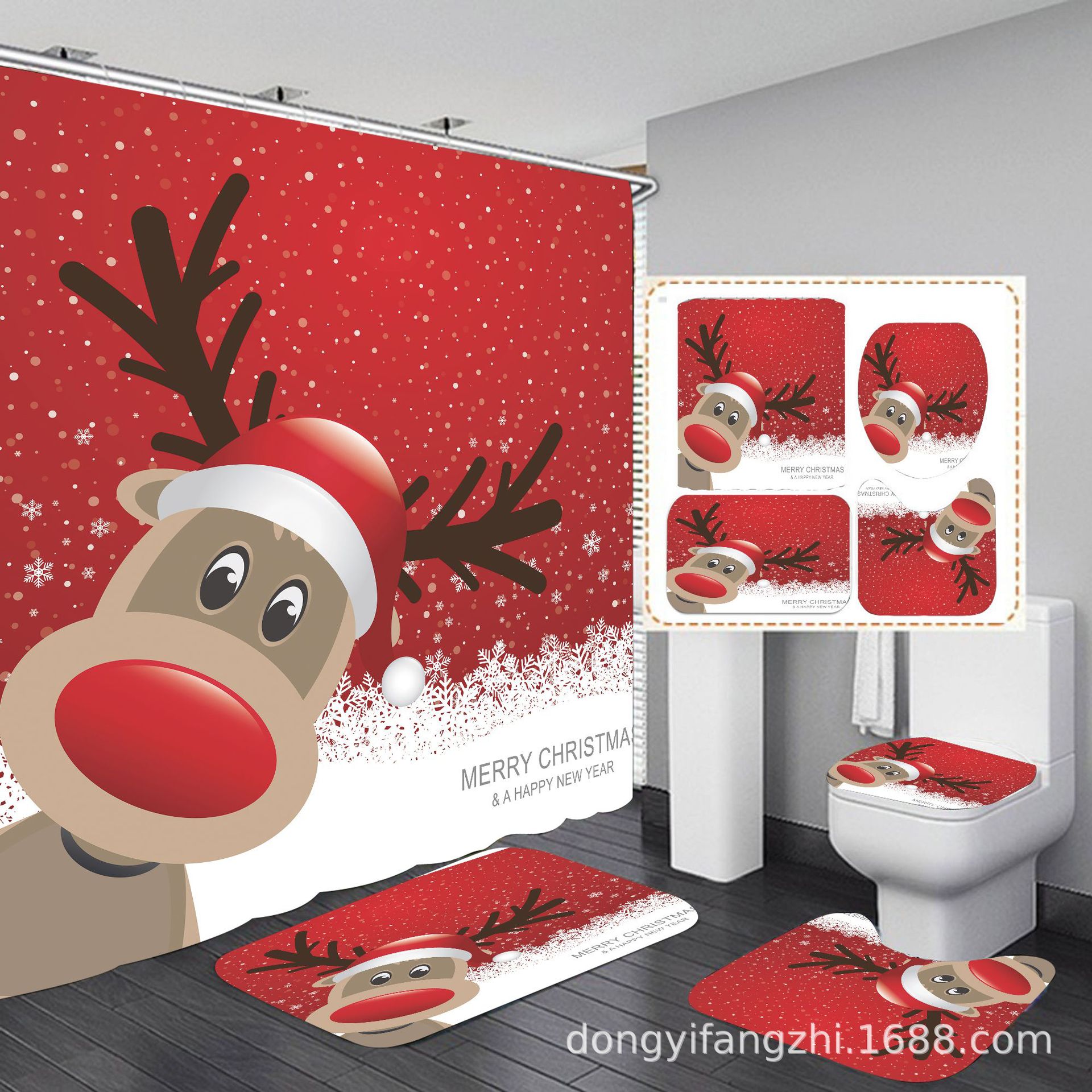 クリスマスシリーズのデジタルプリントシャワーカーテン4点セット防水防かび浴室カーテンは、ラベルを貼って出荷することをサポートしています