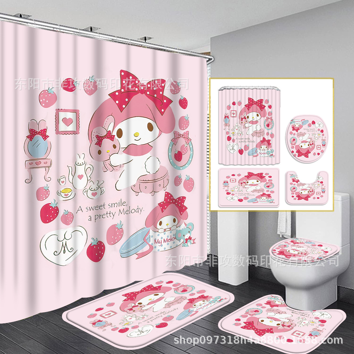 アマゾンの新型アニメサンリオデジタルプリントポリエステル防水遮断カーテン防水滑り止めシャワーカーテン4点セット