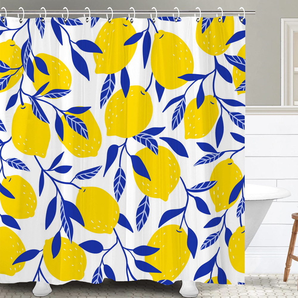 現代の新鮮な果物のレモンのシャワーのカーテンの12フックの防水の織物のシャワーのカーテンの浴槽の屏風の浴室の家庭の装飾