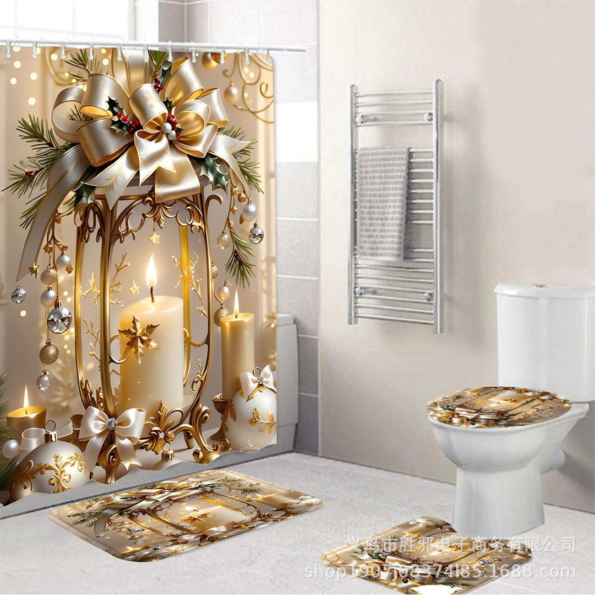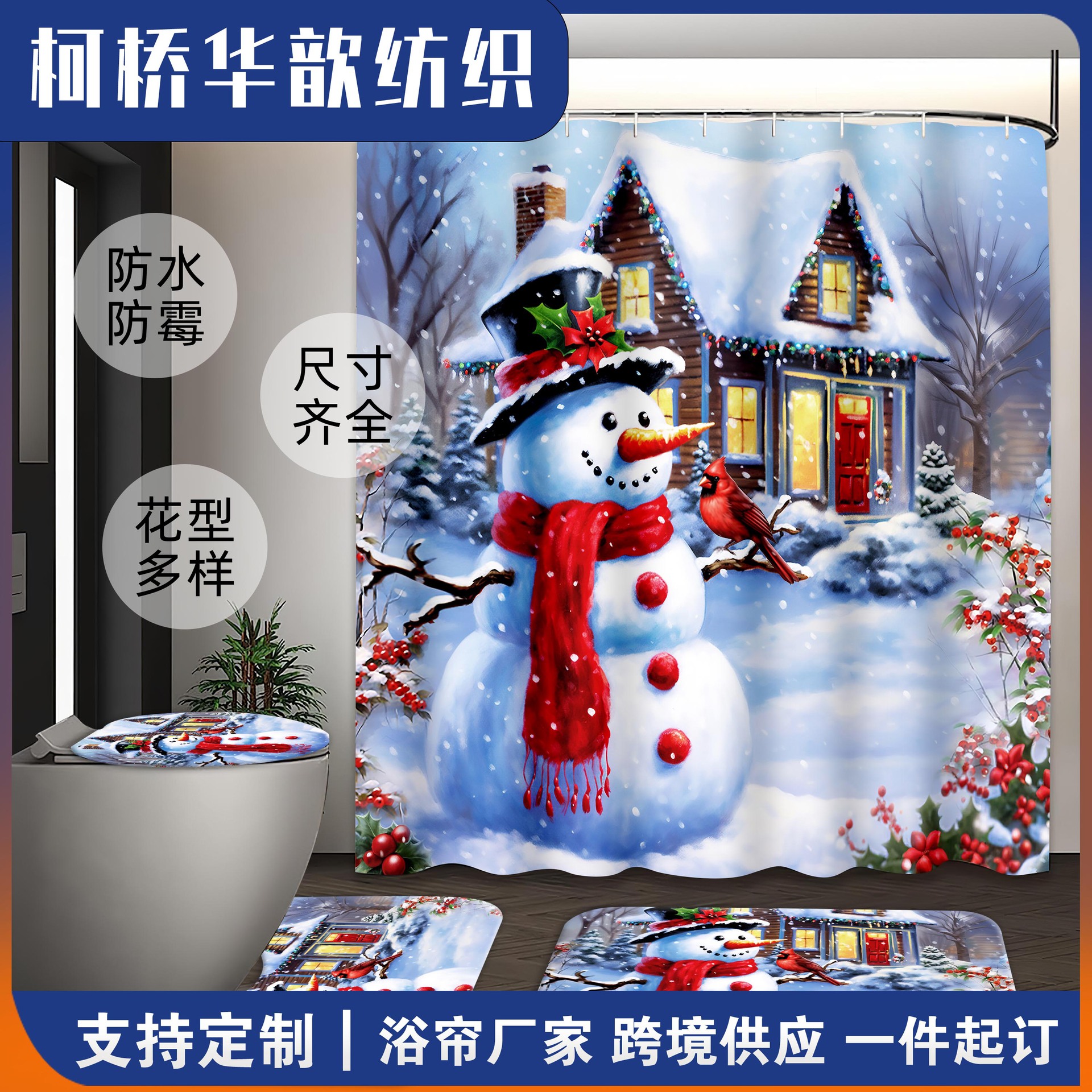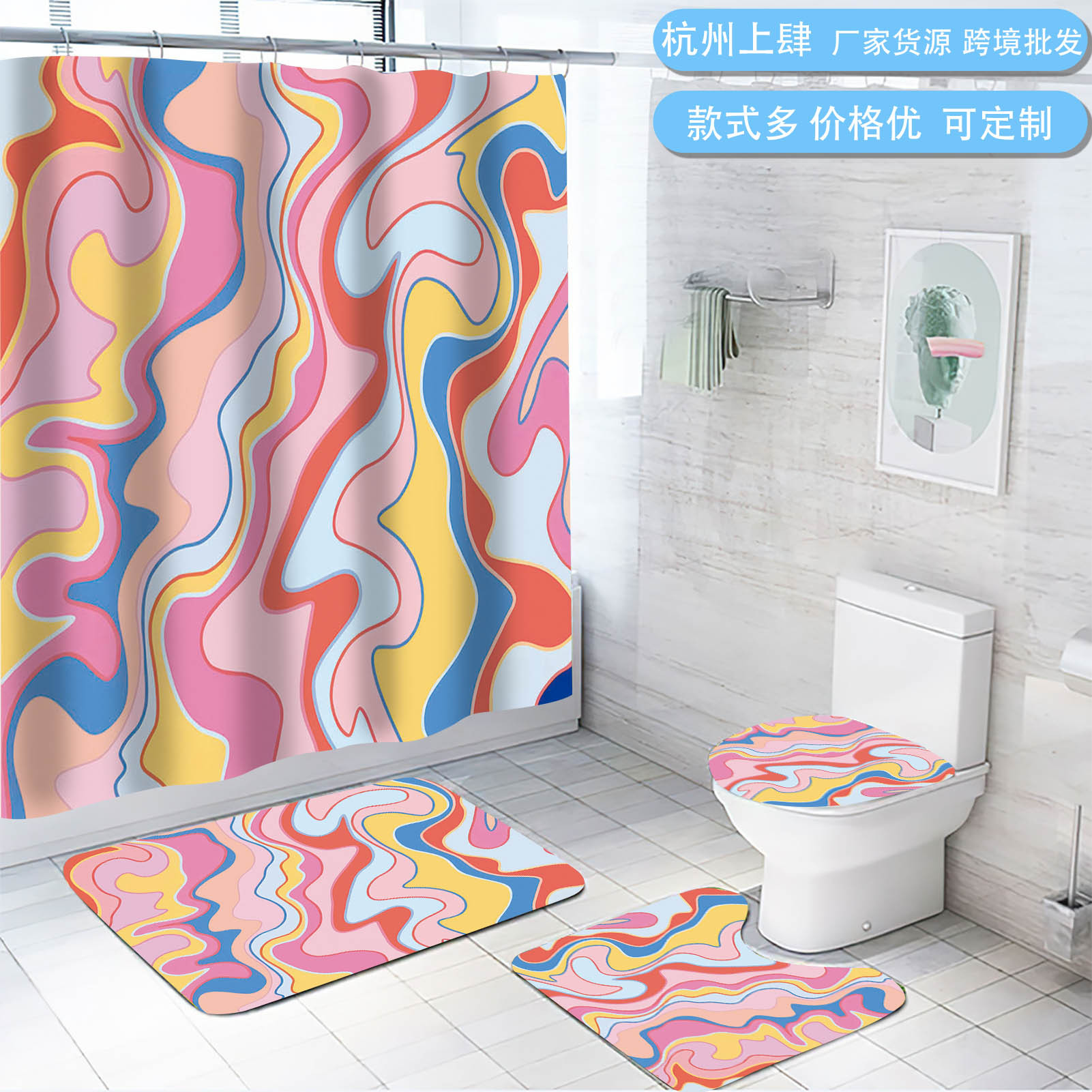 代発TEMU起爆シリーズシャワーカーテンデジタルプリントポリエステル防水防かびシャワーカーテン浴室4点セット