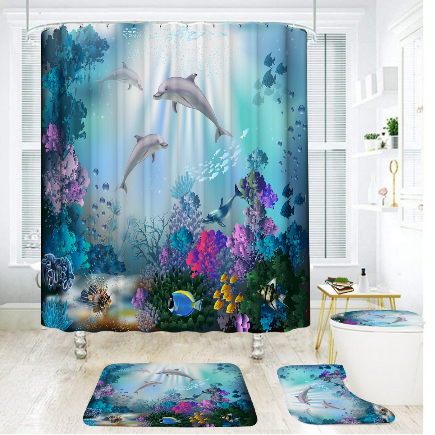 浴室シャワーカーテン4点セットデジタルプリント砂海底世界防水シャワーカーテン