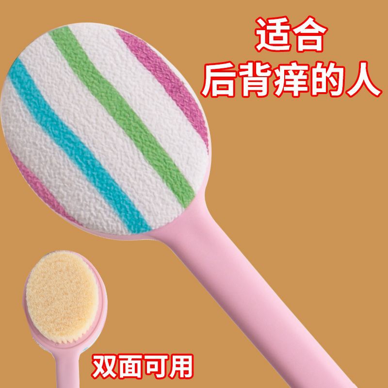 背中をこするためのクマの入浴ブラシ、家庭用の柔らかい毛ブラシ、長いハンドルの両面バスボール、入浴用背中こすりツール