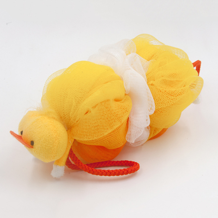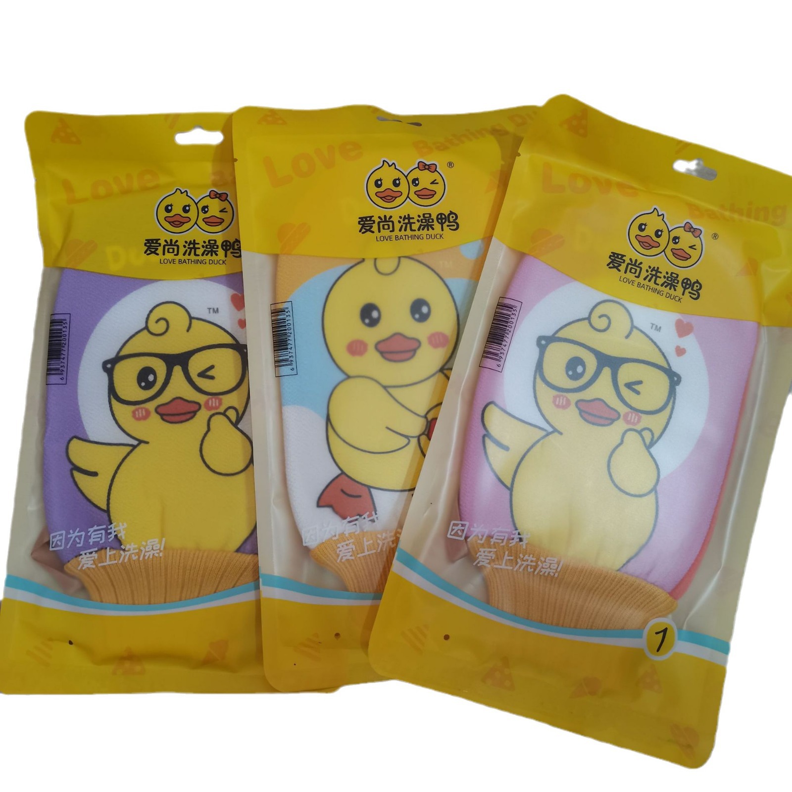 一方のお風呂の漫画の小さい黄色のアヒルの子供のお風呂のタオルは無痛で、皮膚の家庭用のひもを掛けて泥の手袋をこすります卸売りします。