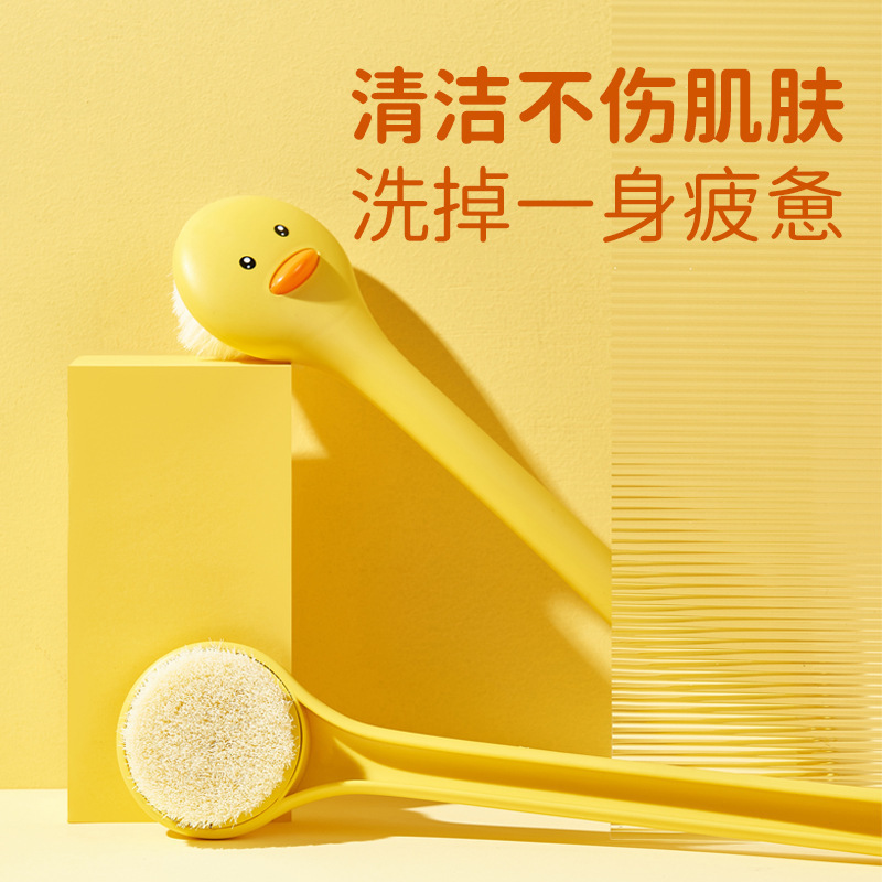 小さな黄色いアヒルの入浴と背中こすりバスブラシバックバスブラシ背中こすりバックブラシロングハンドル柔らかい毛ブラシバスブラシ