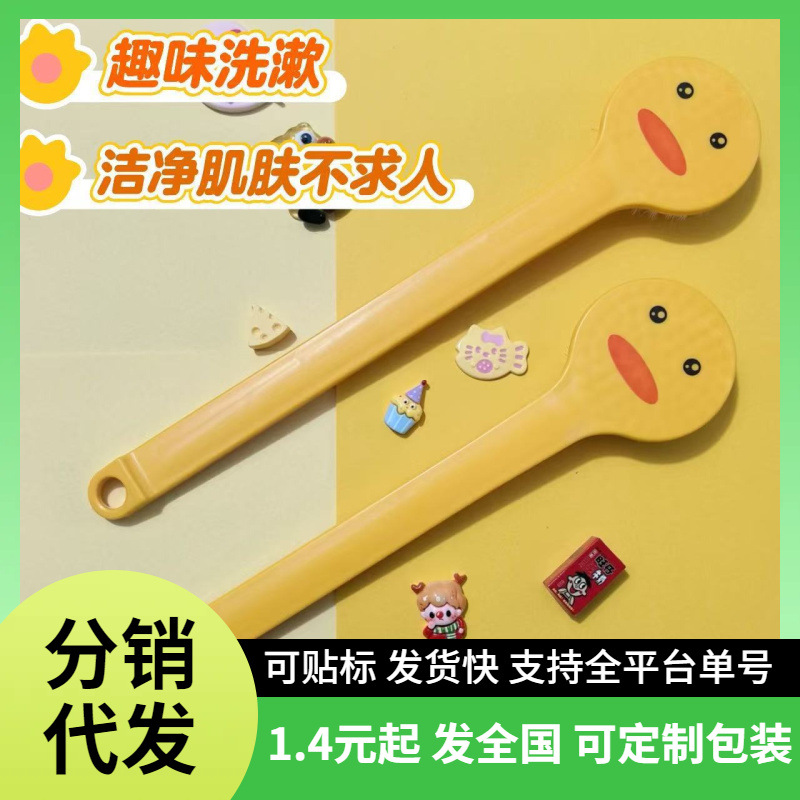 かわいい漫画のバスブラシ、背中をこする小さな黄色いアヒルの柔らかい毛のバスブラシ、大人と子供用の長いハンドルの背中をこするアーティファクト卸売