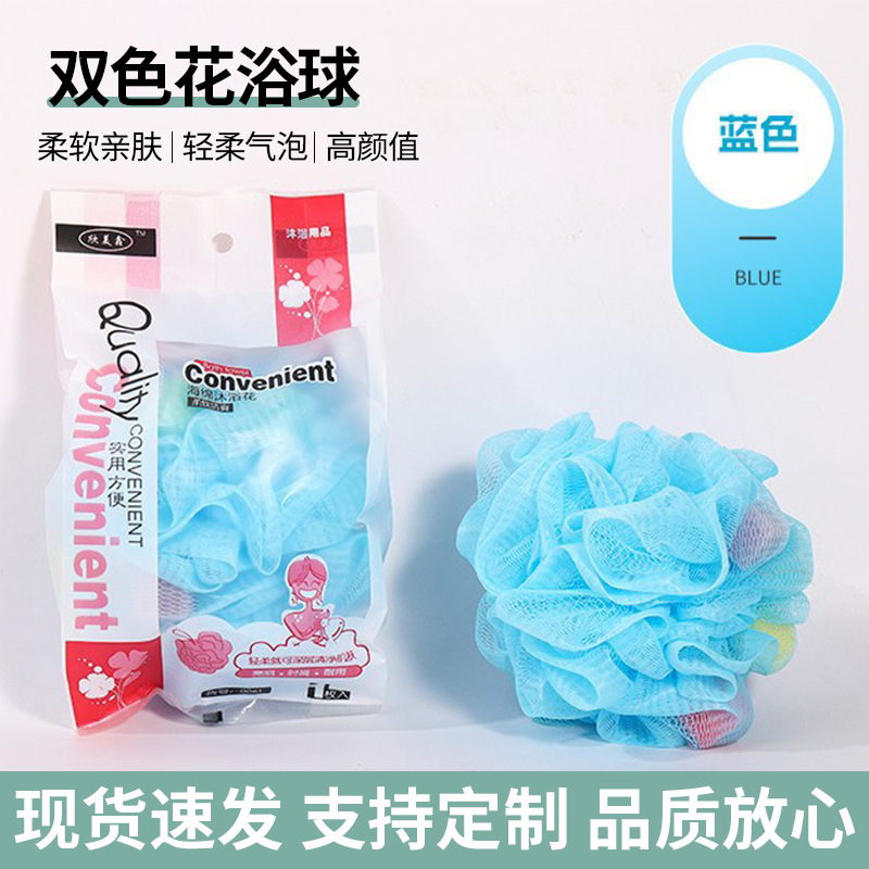 卸売りの大きいサイズのバスボールの浴室の柔らかいお風呂の神器の用品のバスの花の泡立てネットは2色のバスボールをつなぎ合わせます。