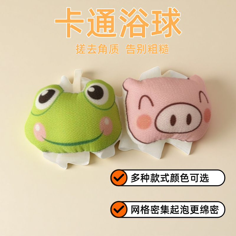 カエル漫画バスボール、多泡、柔らかく肌に優しい、耐久性のあるバススクラブ、バスフラワー、ツーインワンメーカー卸売