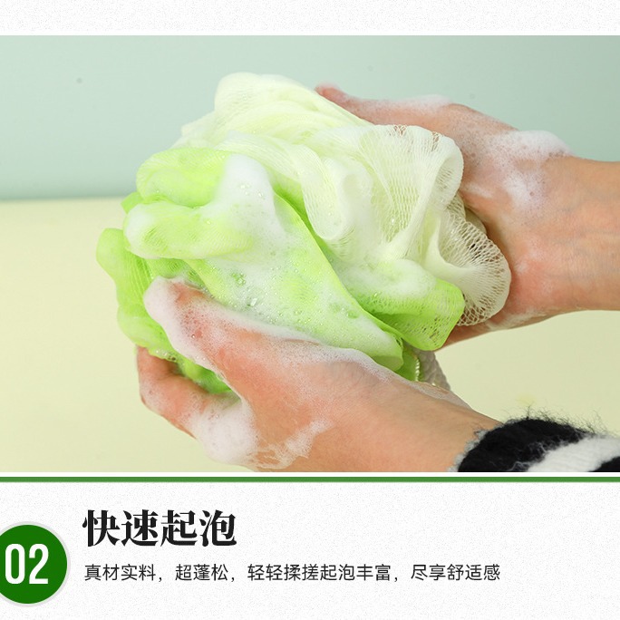 卸売りの大きいサイズのバスボールの浴室の柔らかいお風呂の神器の用品のバスの花の泡立てネットは2色のバスボールをつなぎ合わせます。