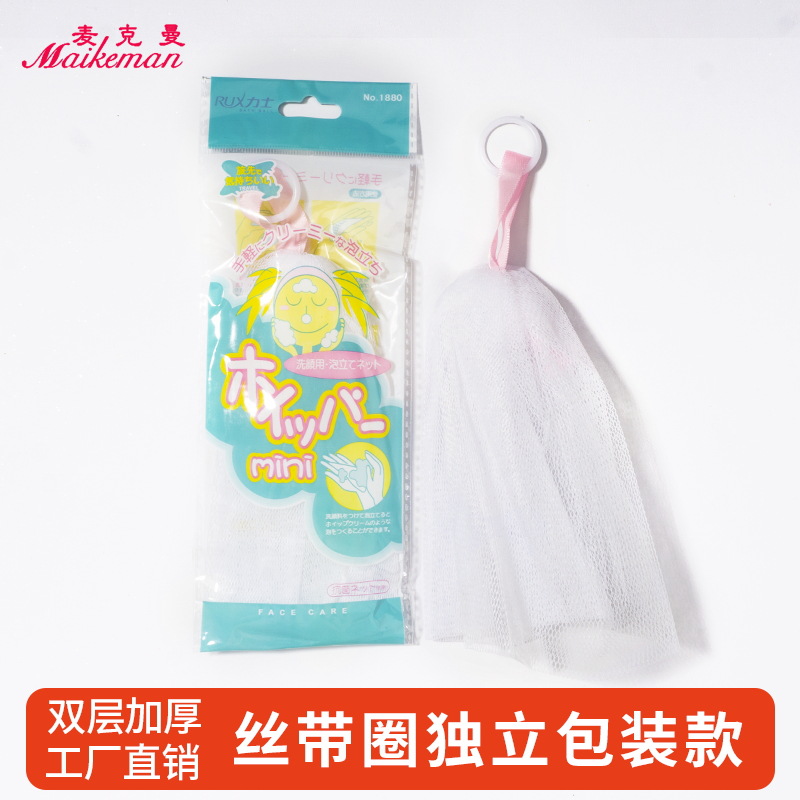 マクマン洗顔料泡立て網顔清潔泡立て網二重リボン工場供給もみ泡発泡網
