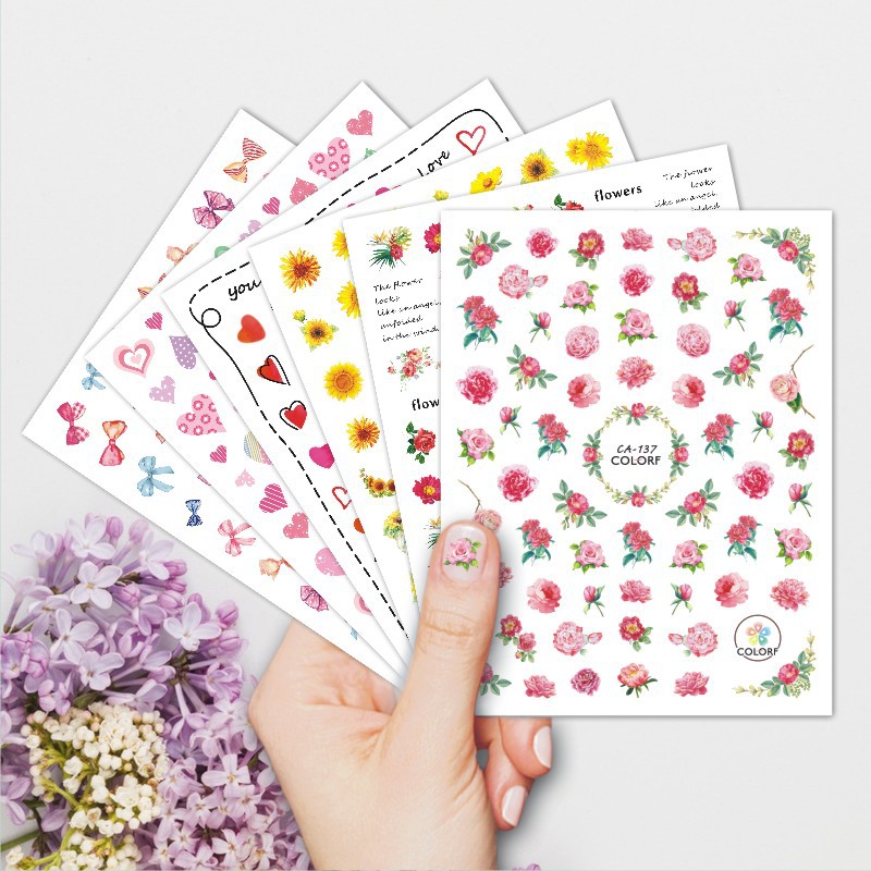 国境を越えた対外貿易の爆発金caシミュレーション美甲貼り早春花ヒマワリ蝶ネクタイ桃心漫画爪貼り