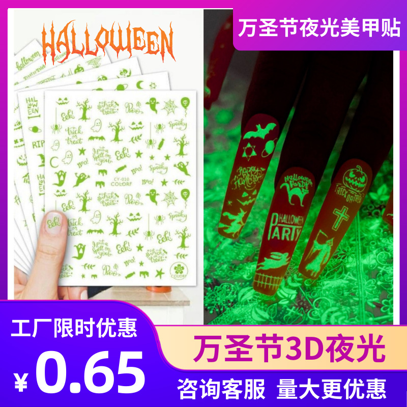国境を越えた対外貿易の爆発物CY夜光美甲貼り3d夜光復古カボチャ恐怖ハロウィーン美甲貼り卸売り