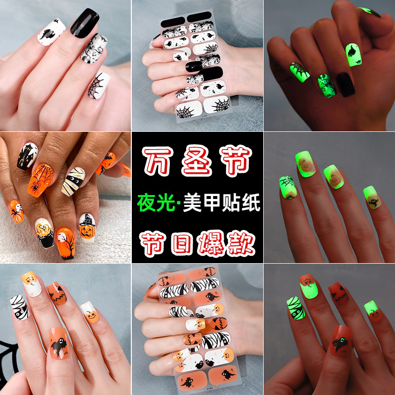 クロスボーダーハロウィンネイルアートステッカー防水ヨーロッパとアメリカの漫画マニキュアフィルム子供用かわいいベイクレスネイルステッカー発光