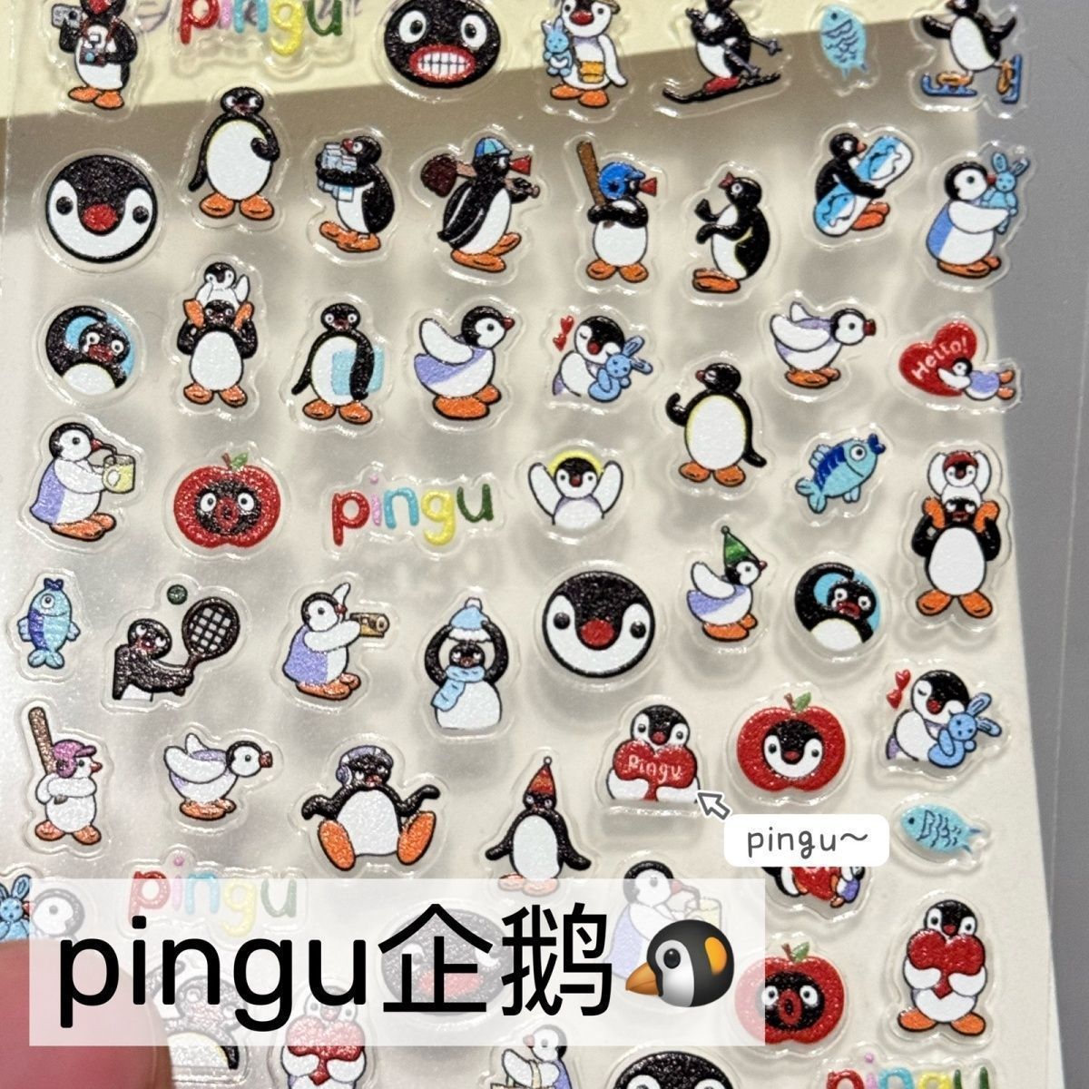 超人気のピングー ペンギン ネイルアート ステッカー インスタイル ガーリーハート 5D エンボス加工 立体装飾 水カップ カメラ DIY ステッカー