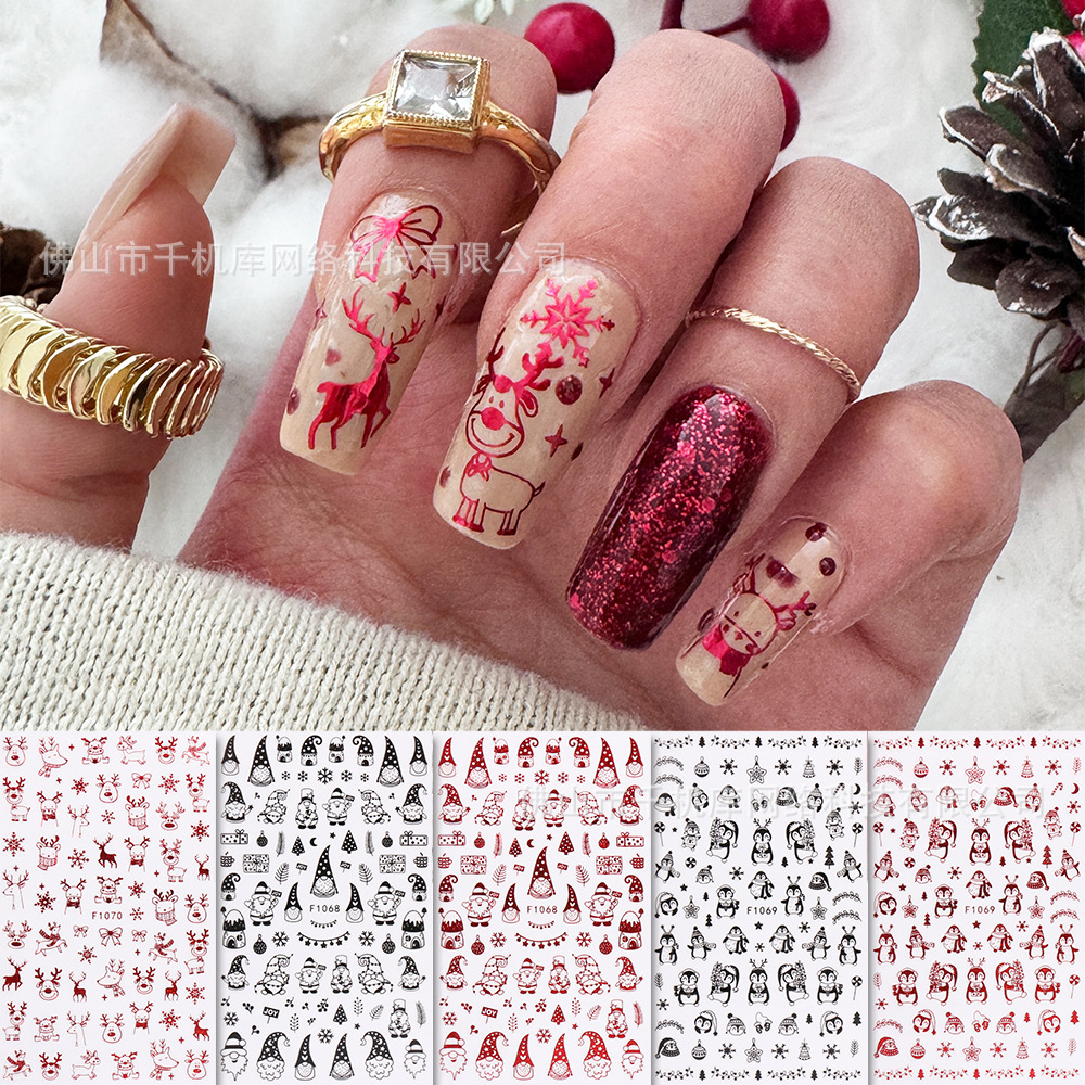 国境を越えたホットなクリスマスネイルシール漫画3Dバックテープクリスマス雪だるまヘラジカ爪貼り装飾卸売り