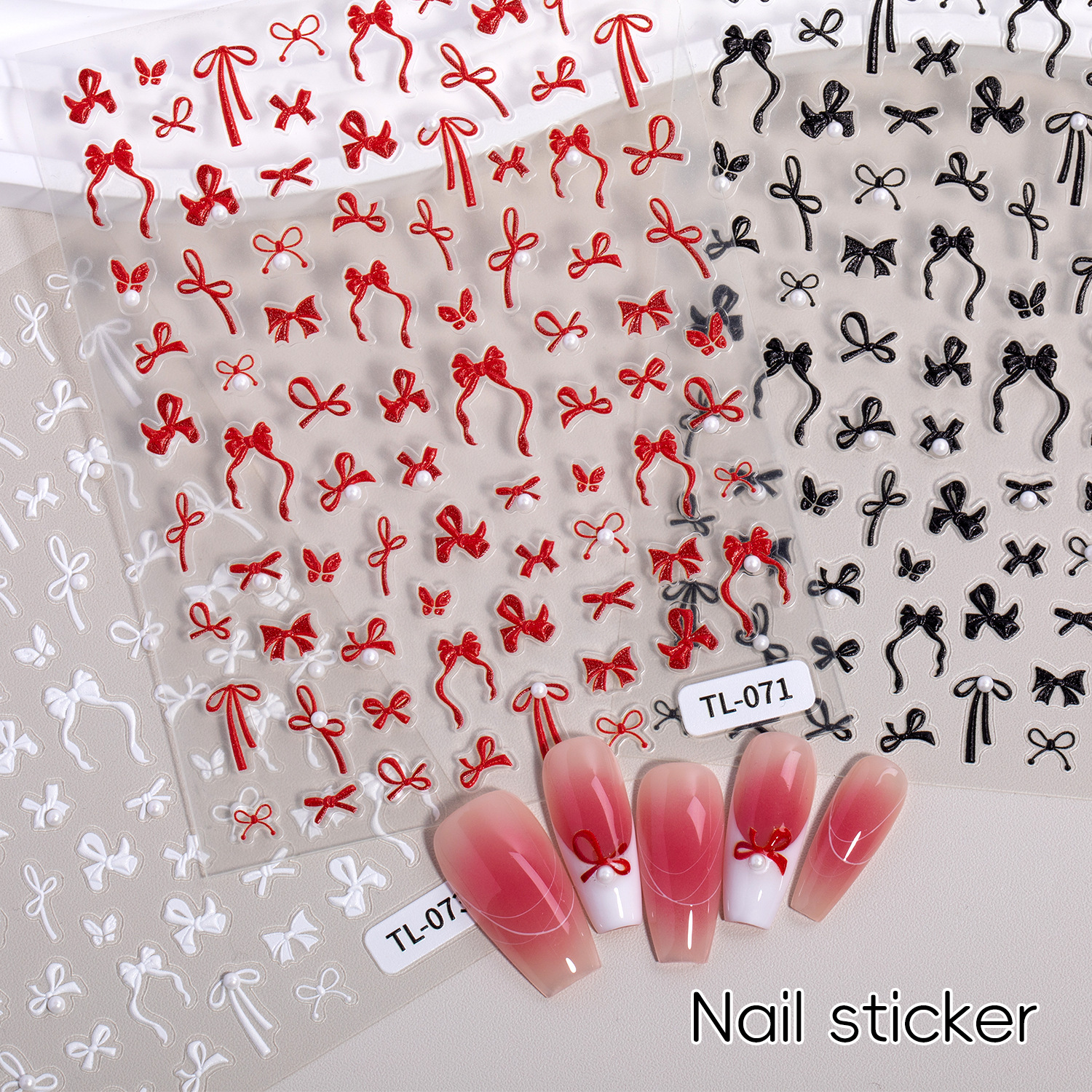 真珠の蝶結びの爪のシールの5Dの浮き彫りの軽い豪華な純色のリボンの蝶結びのネイルシールの装飾品TL項