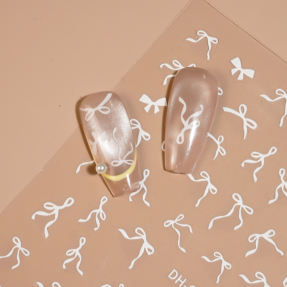 レリーフ新作ピンクホワイト可愛い蝶結びネイルステッカーシンプルな少女心甘美蝶結びネイルステッカー
