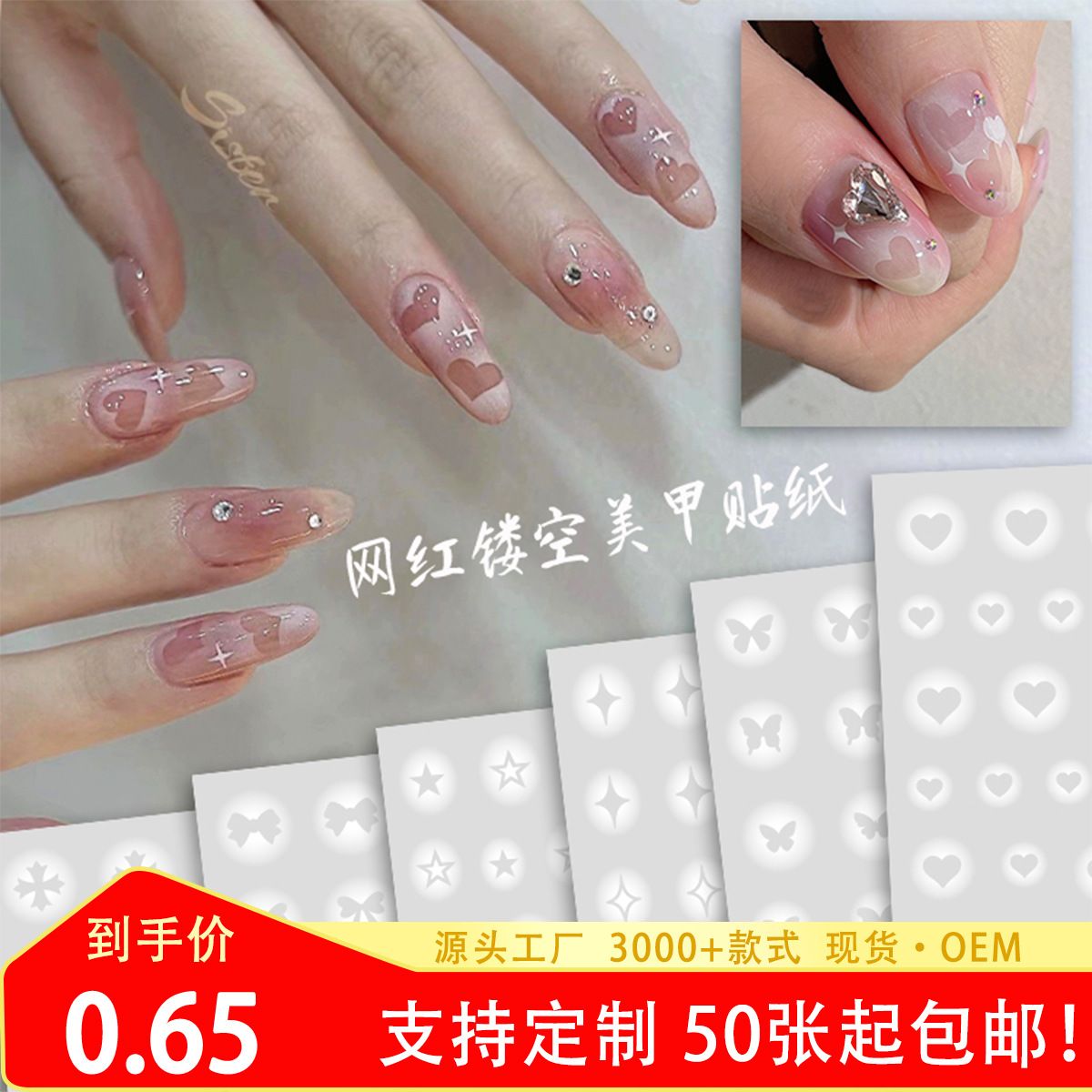 ホワイトブルーミング半透明中空ネイルアート蝶ステッカーラブスターステッカーインクジェットフリーネイルデカール混合バッチ