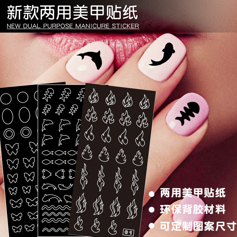 国境を越えて起爆した3dネイルデカール白黒カラーネイルステッカーフランス爪デカール防水メーカー卸売り