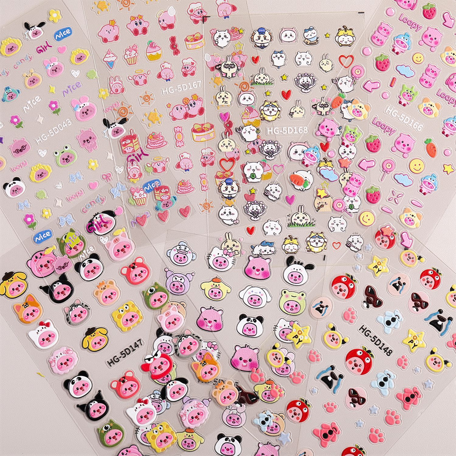 TENSOR エンボス加工立体ネイルアートステッカー M564 かわいいパンダウサギチェリーネイルステッカー子供用