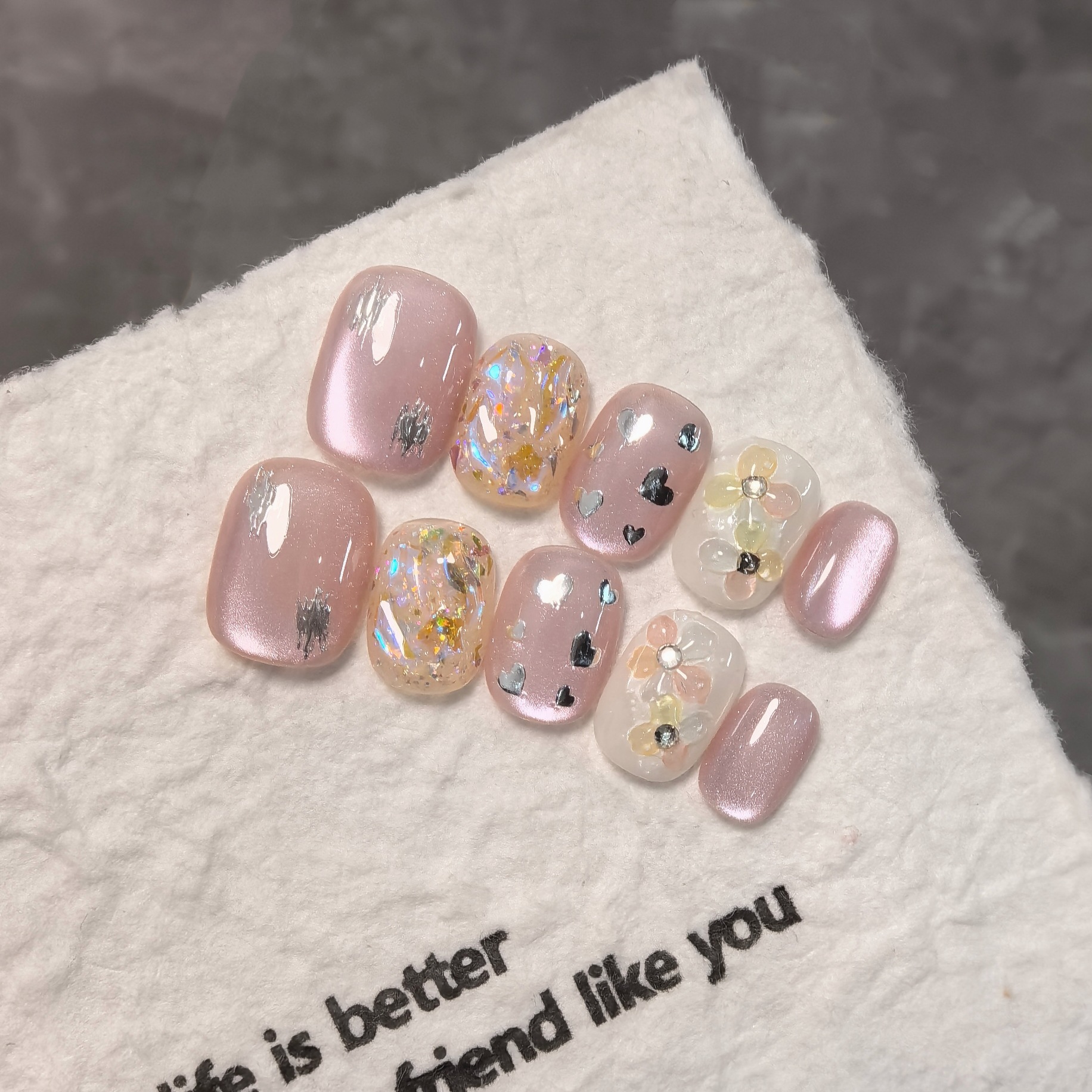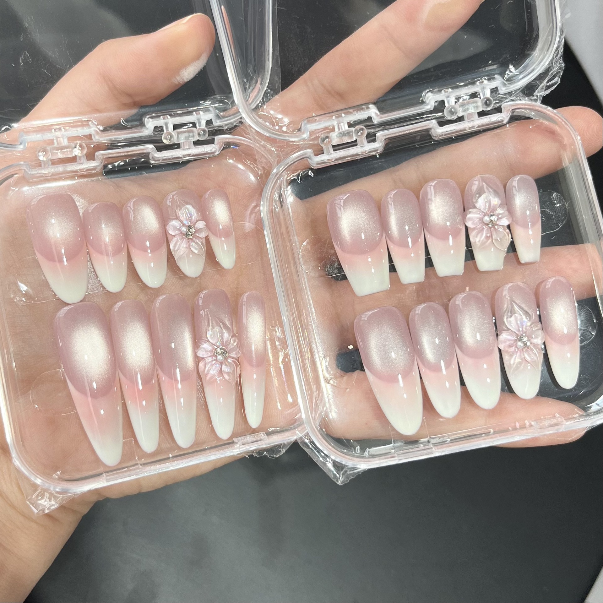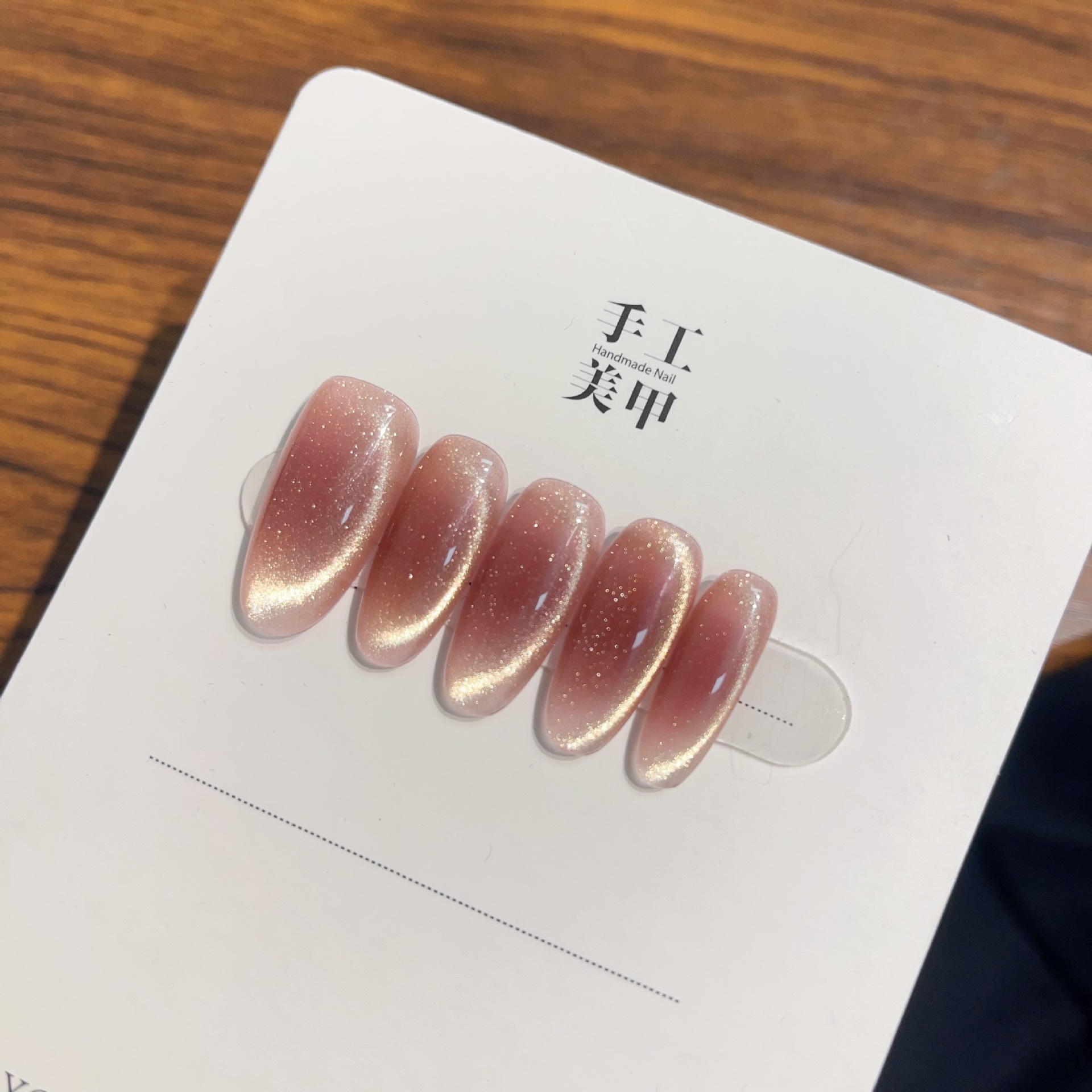 (锆石版)手工拆卸式花瓣猫眼腮红美甲 纯手工穿戴甲假指甲贴片