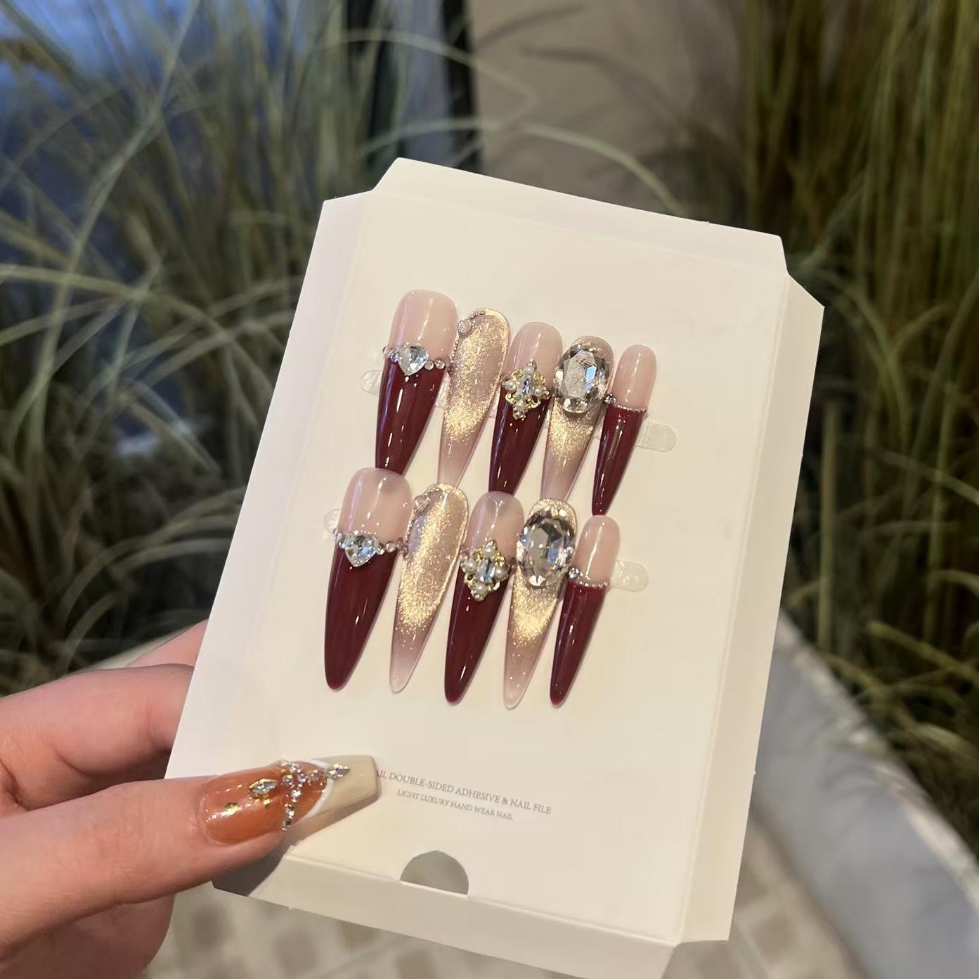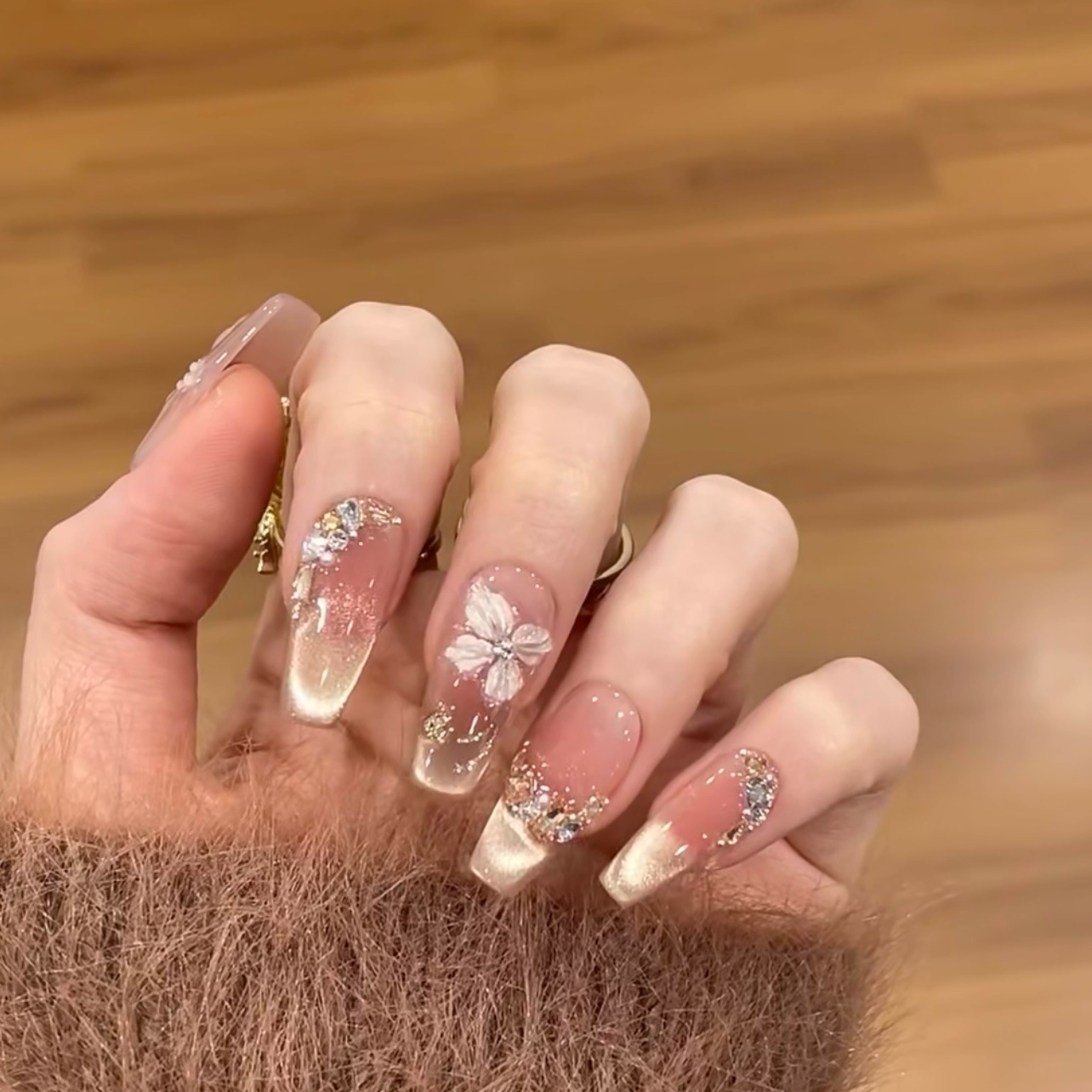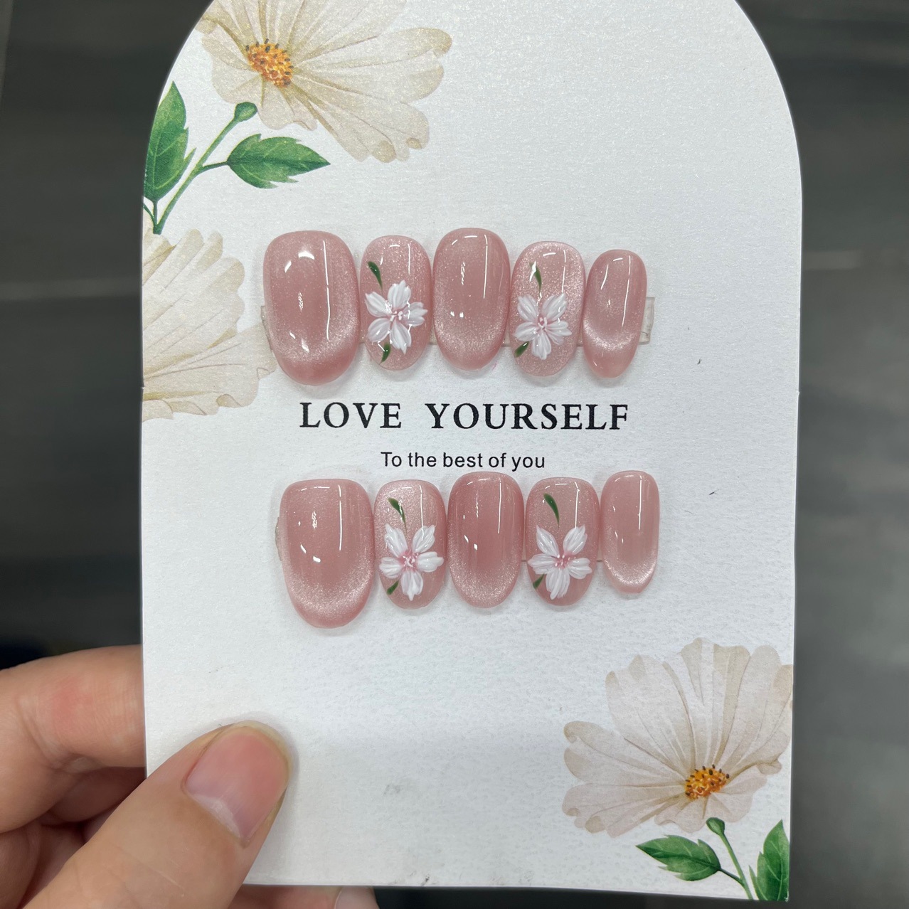 (锆石版)手工拆卸式花瓣猫眼腮红美甲 纯手工穿戴甲假指甲贴片