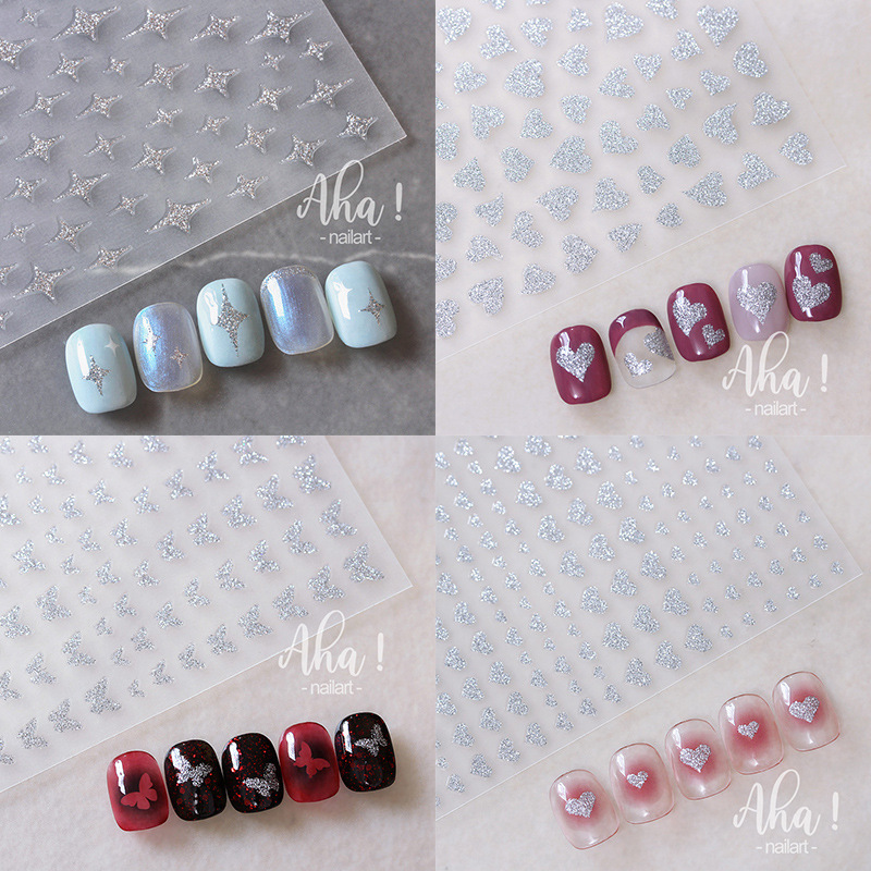 Haネイルアートバックステッカー銀色キラキラ蝶四芒星愛爪装飾品デカールネイルアクセサリー