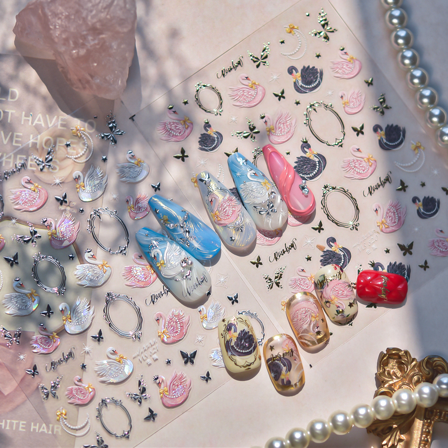 tomoni&miss メタルネイルアートステッカーインモダンシンプルネイルステッカーホワイトスワンステッカー素材ミックス