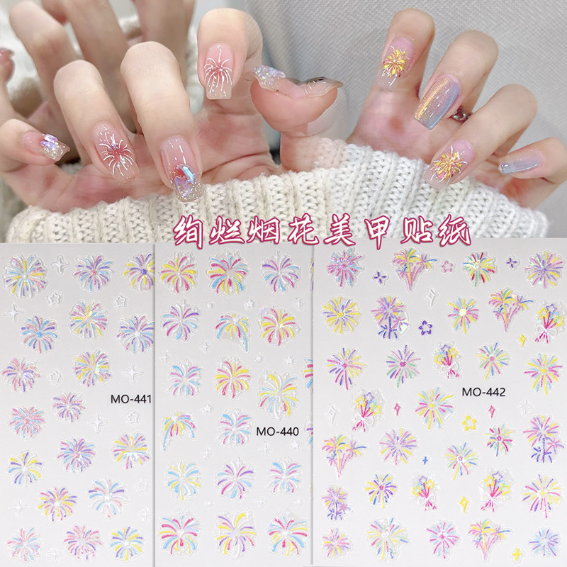きらびやかな花火のネイルシールのレリーフ立体新年の国潮風は爪の装飾品を身につけてネットを貼ります。