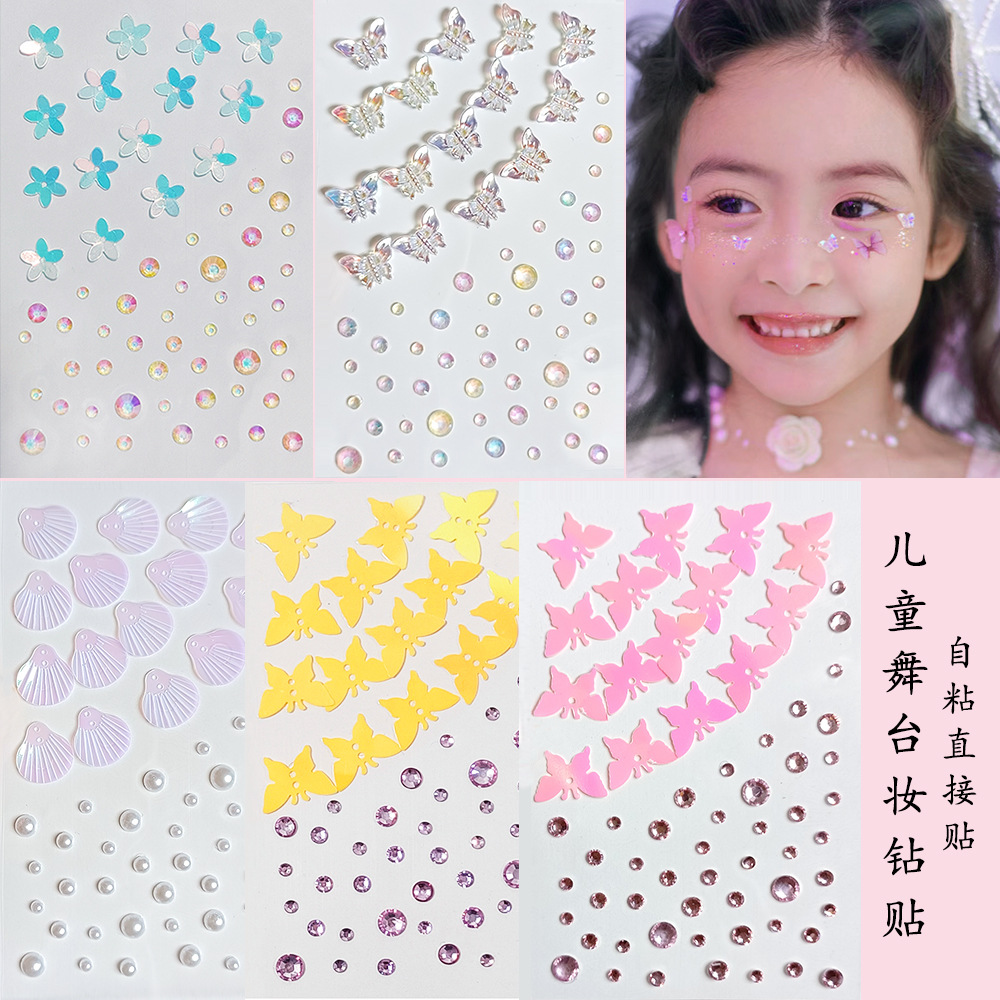 子供の日に化粧をして顔のアクセサリーを貼ります。