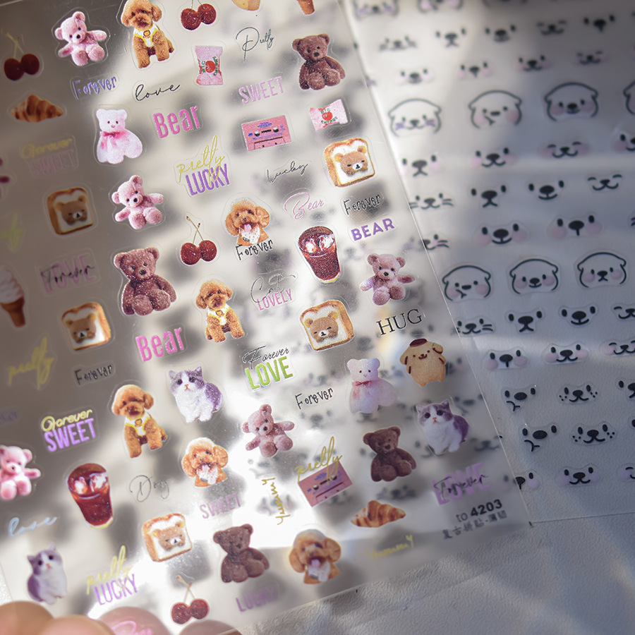 レリーフ立体ネイルシールins愛が萌えて犬が可愛い猫模様の爪diy日系アニメ3d