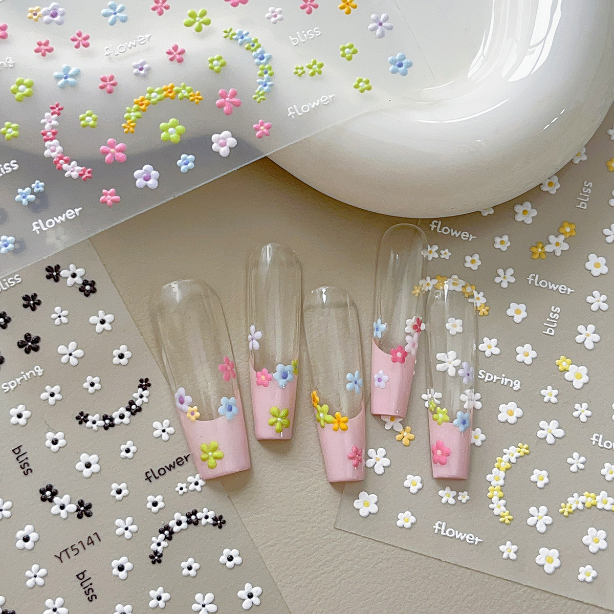 ネット赤浮き彫り花ネイルシール新日系立体カラー小砕花帯バックテープ防水ネイルステッカー