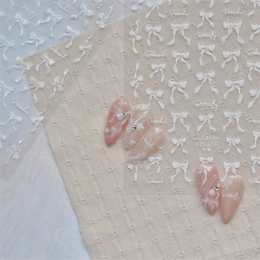 ネイルアートステッカーリボンリボン白立体薄型タフなリボンバレエシューズ DIY ネイルデカール装飾品