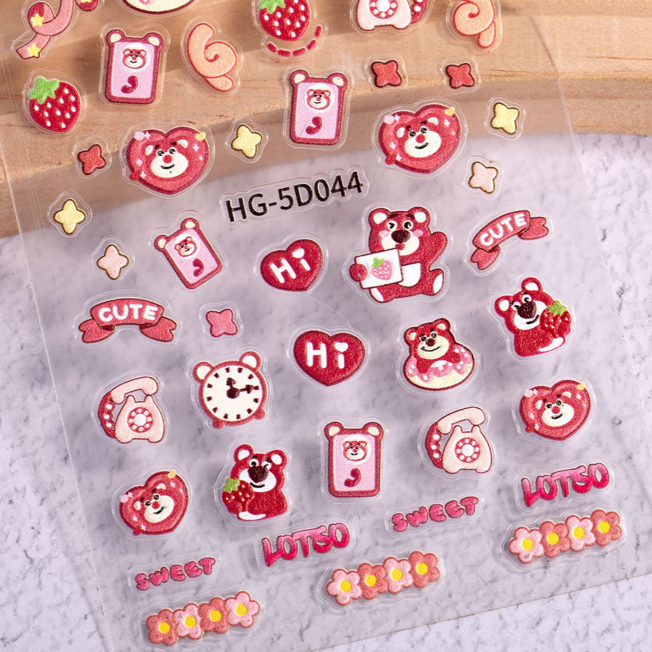 かわいいイチゴクマネイルステッカー 5D立体スヌーピーDIYネイルステッカー飾り HGタイプ