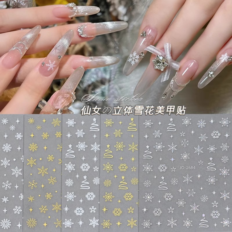 インターネット有名人クリスマススノーフレークネイルアートステッカーフラッシュゴールデンクリスマスツリーホワイトレーザーシルバー透明底ネイルステッカー