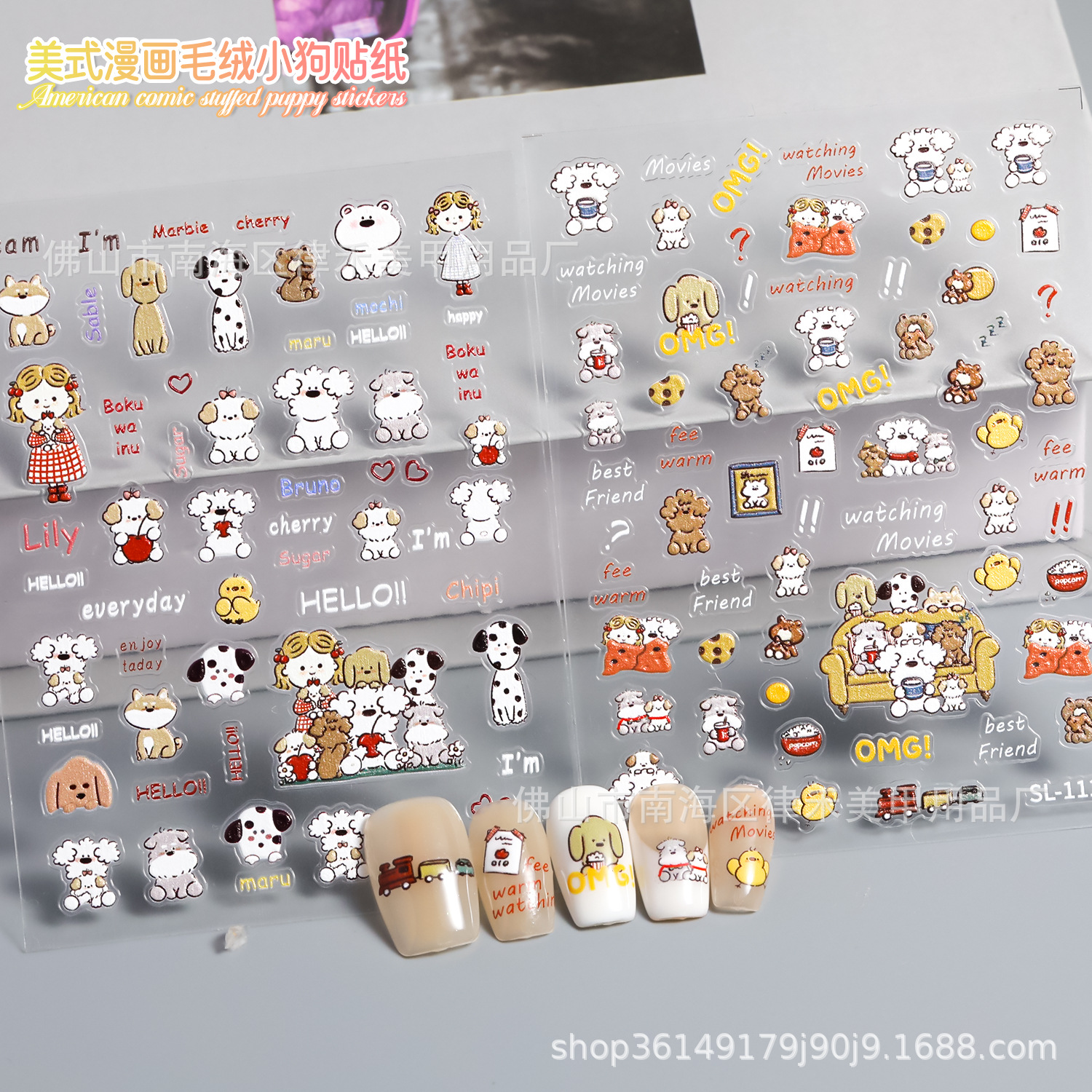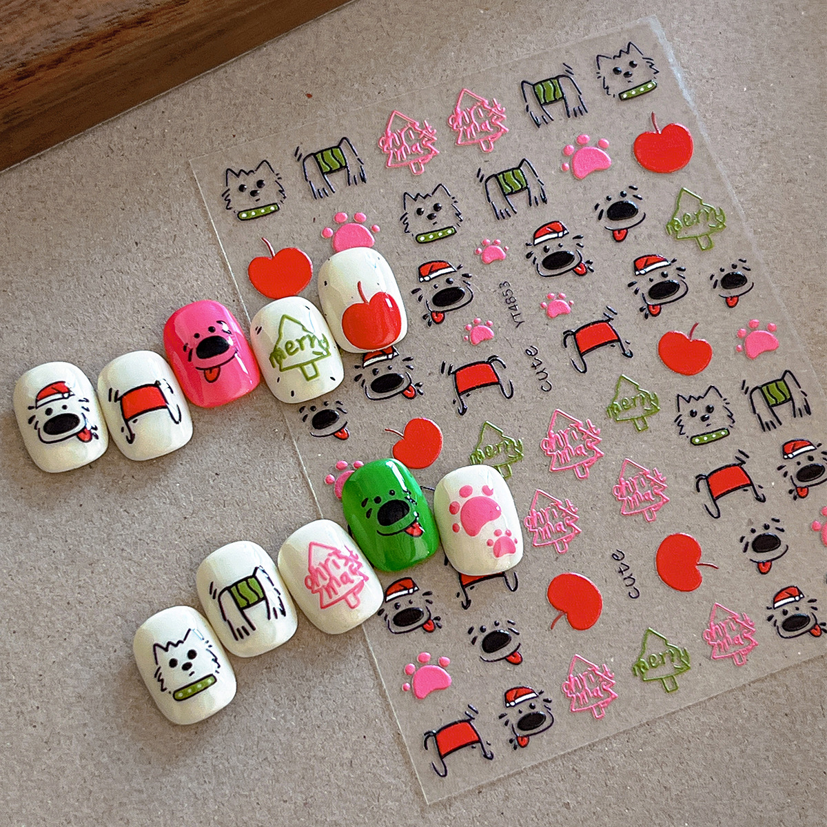 YITU蟻図浮き彫りカード通犬ネイルシールリンゴ爪印かわいいバックゴム付き爪装飾シールYT4853