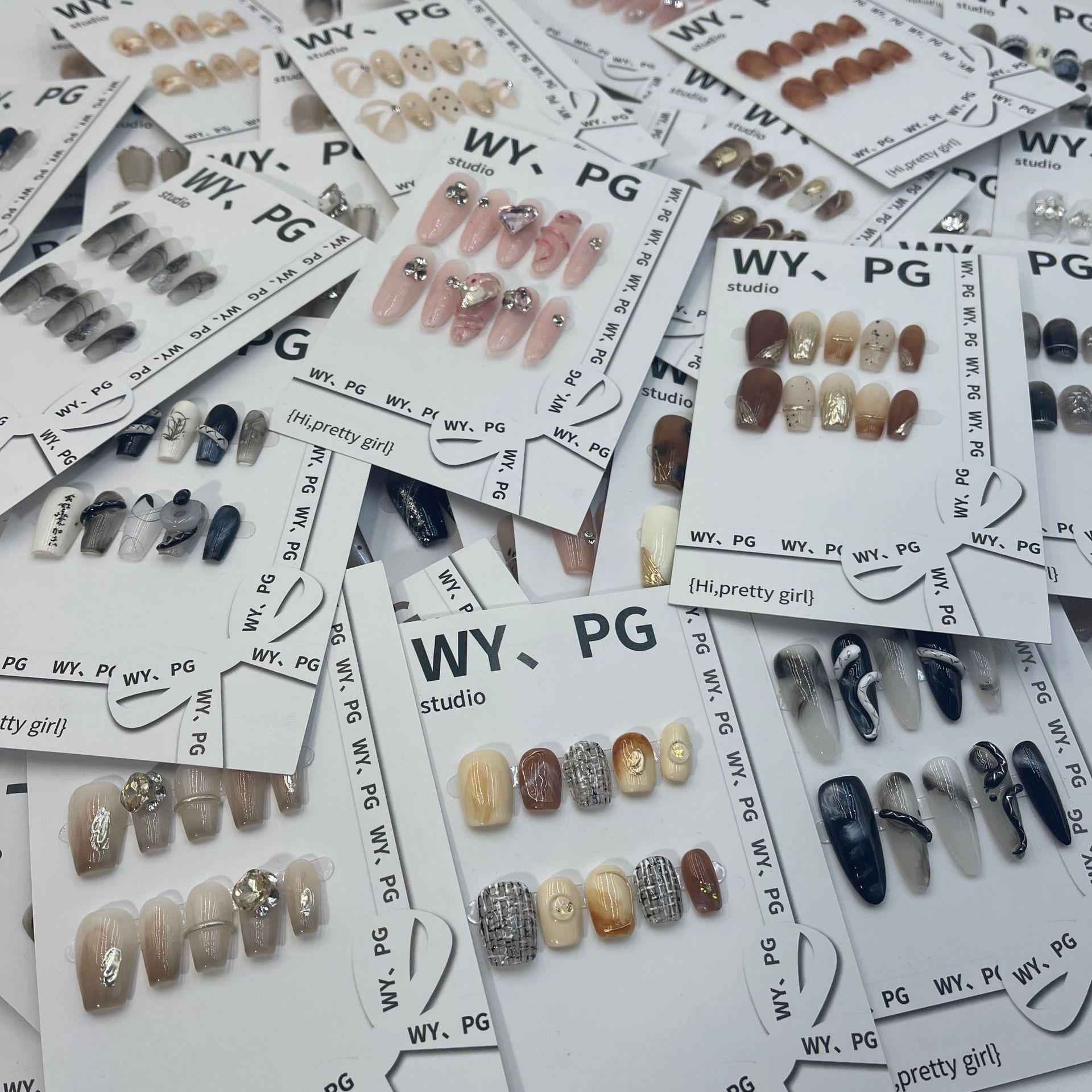 新型の純粋な手作業は甲を着て、露店のランダムなデザインを並べて、サイズを選んで、ネイルアートを組み合わせる暇がない