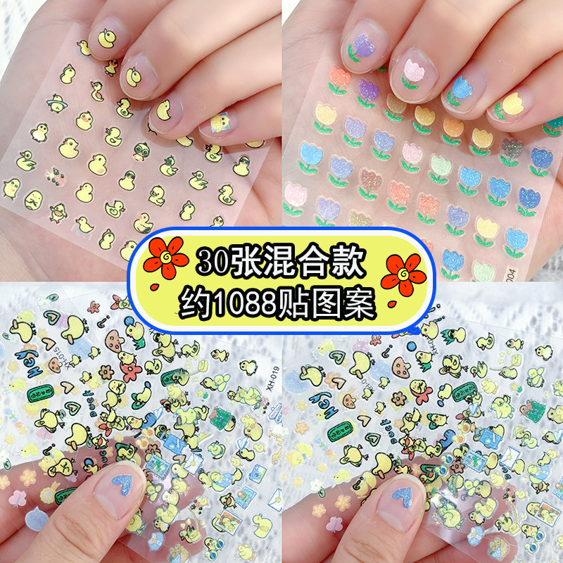 新商品の愛の小さい黄色のアヒルのネイルシールの混金の卸売りの日本のフラッシュの粉の漫画の子供のかわいい爪のステッカー