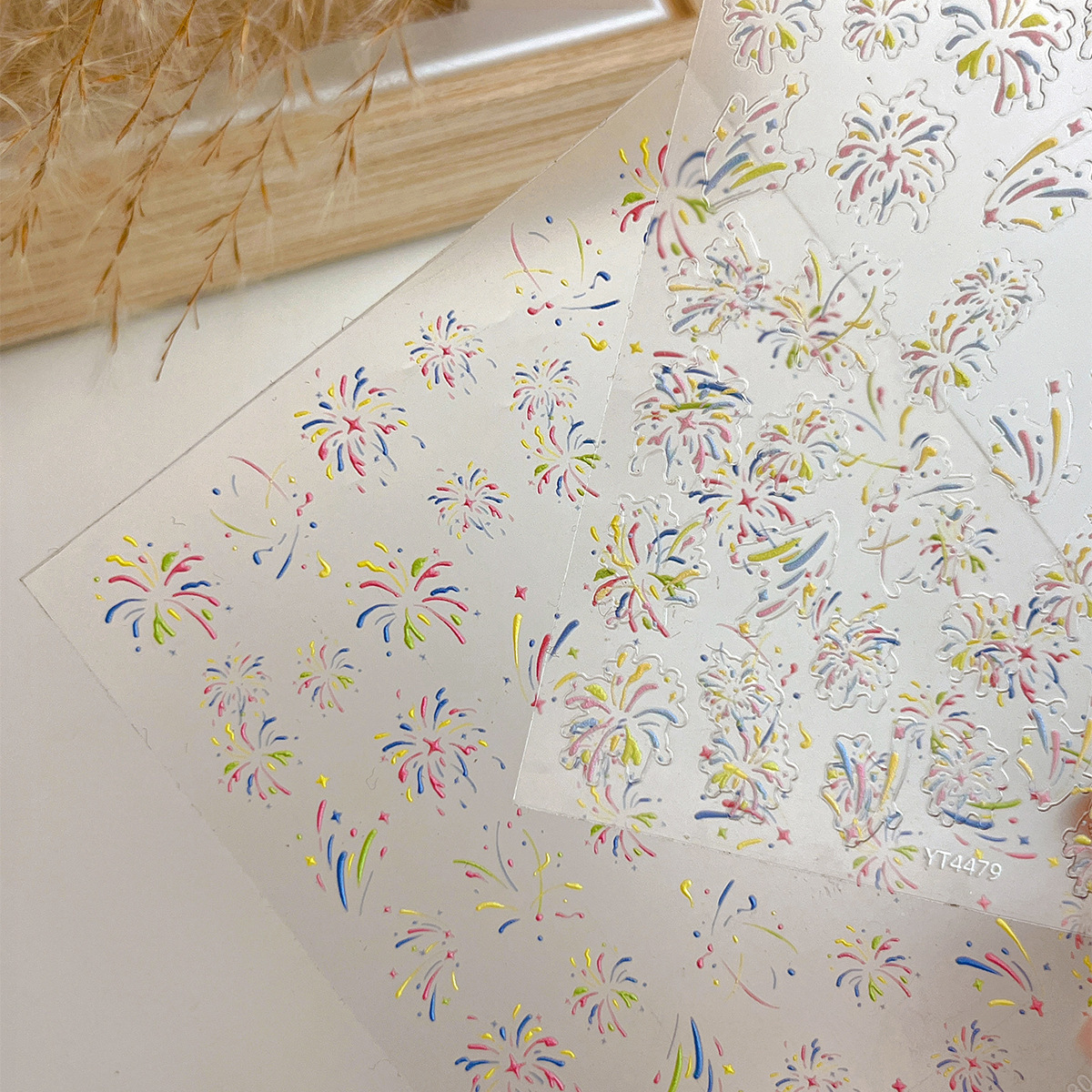 新年のロマンチックな花火のネイルステッカーの甘い風のカラフルなレリーフの爪は星空の花火の金の爪の装飾を貼ります。