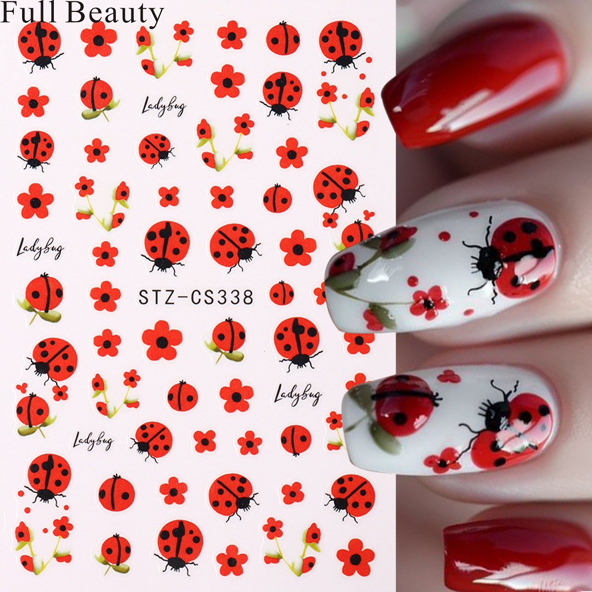 FULL BEAUTYクロスボーダー新作ネイルシールins春アニメ七星瓢箪虫小花ネイルシール