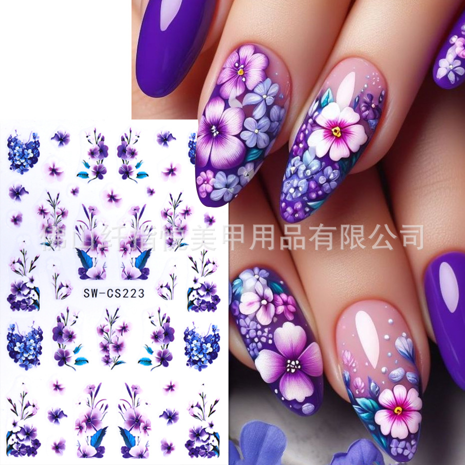 国境を越えた新しいネイルシールins小清新な紫色の花の乾いた花の葉ラベンダーの背中の爪のデカール