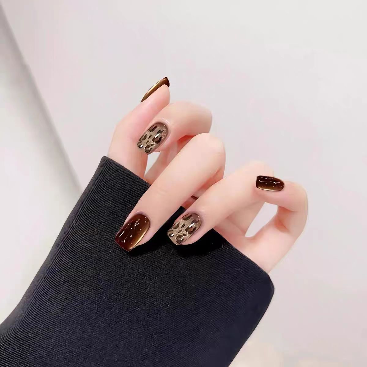 美ラードのヒョウの紋様の手は甲の猫の目の偽の爪のネイルシールの秋冬の項のカレーの色の猫の目の爪のシールを着ます。