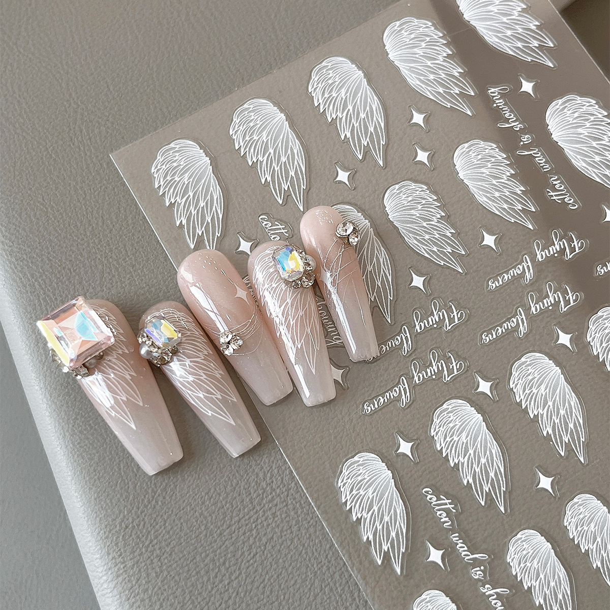 YITU蟻図天使の翼ネイルシール白い翼の薄い強靭な金はゴムの爪を背負って装飾を貼っています。