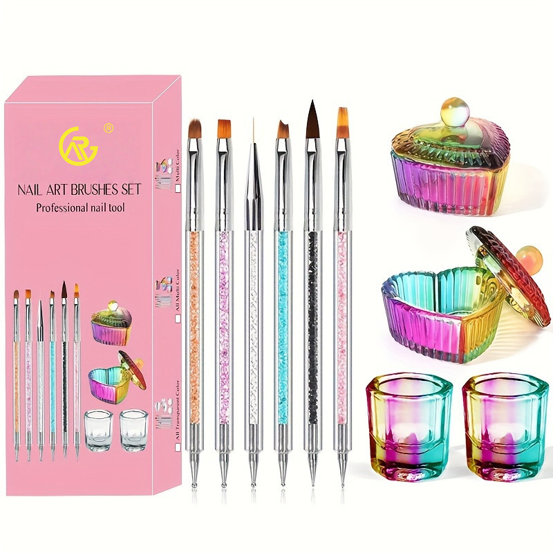 ネイルツール10点セットクリスタル八角カップ6本ダブルネイルペンシルセット多机能フタ付き愛カップ