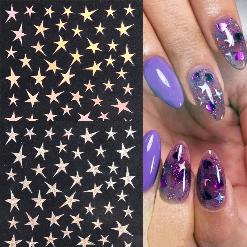 2023新型星美甲貼りサツマイモネット赤流行甘美閃粉銀レーザー紫五角星バックテープ