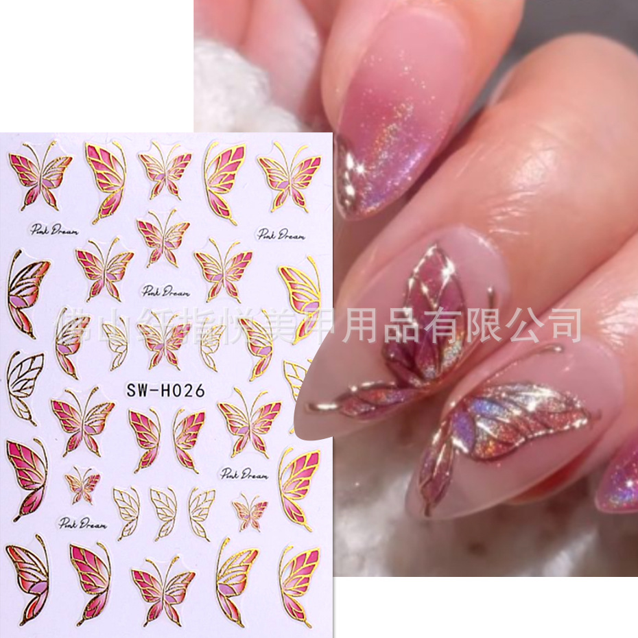 新型箔押し蝶ネイルシールins金属透かし彫り蝶翼夏琥珀蝶ネイルステッカー