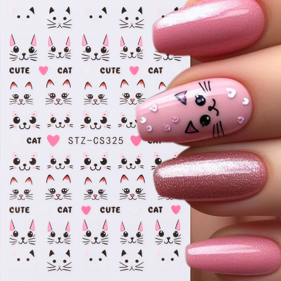 国境を越えた新しいネイルシールかわいいピンクの子猫漫画落書き猫バックゴム爪貼り卸売りnail