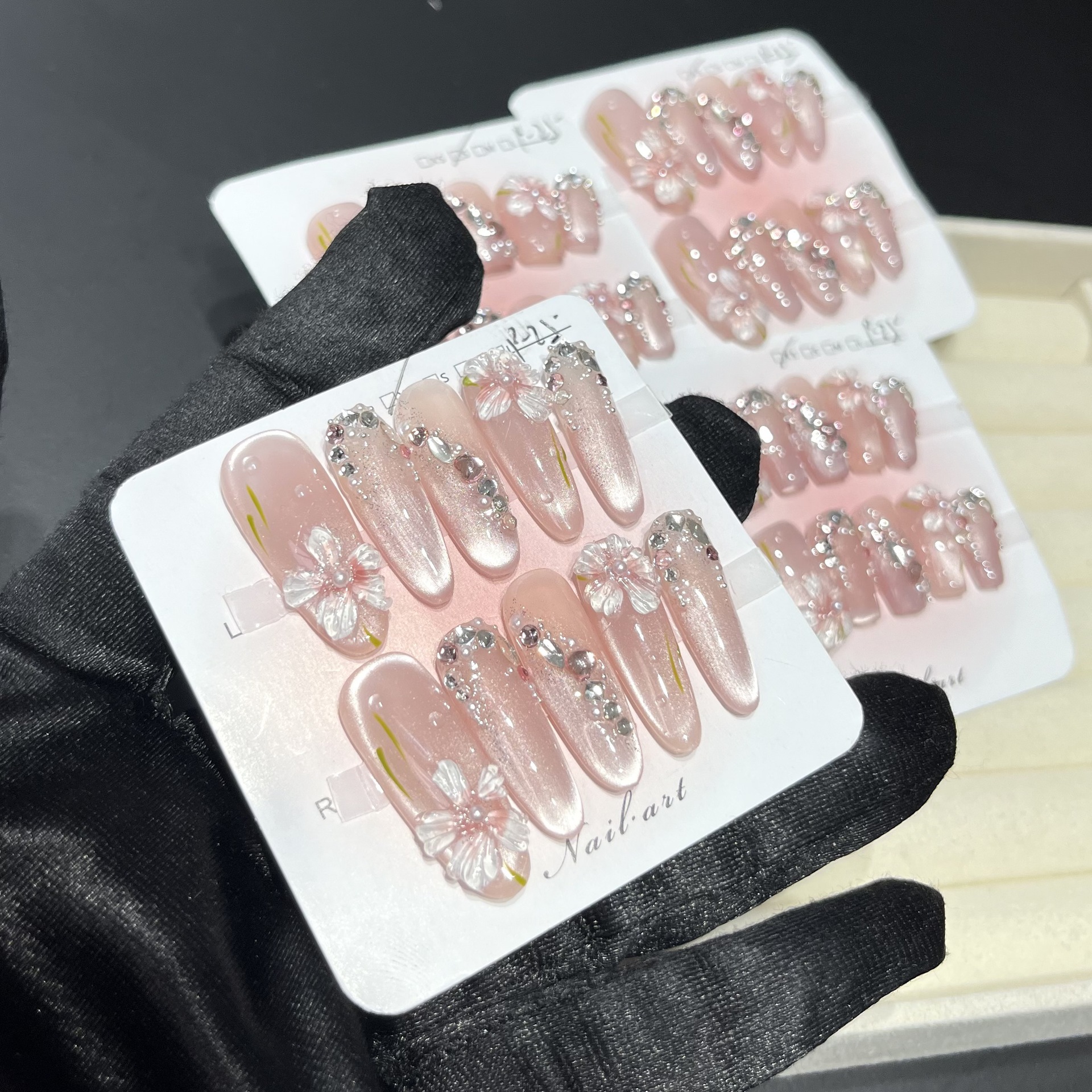 純粋な手作業の光治療は甲の花の間を着て純粋な手描きの立体の塑形の猫の目のツバキの花のネイルを着て甲の卸売りをします。
